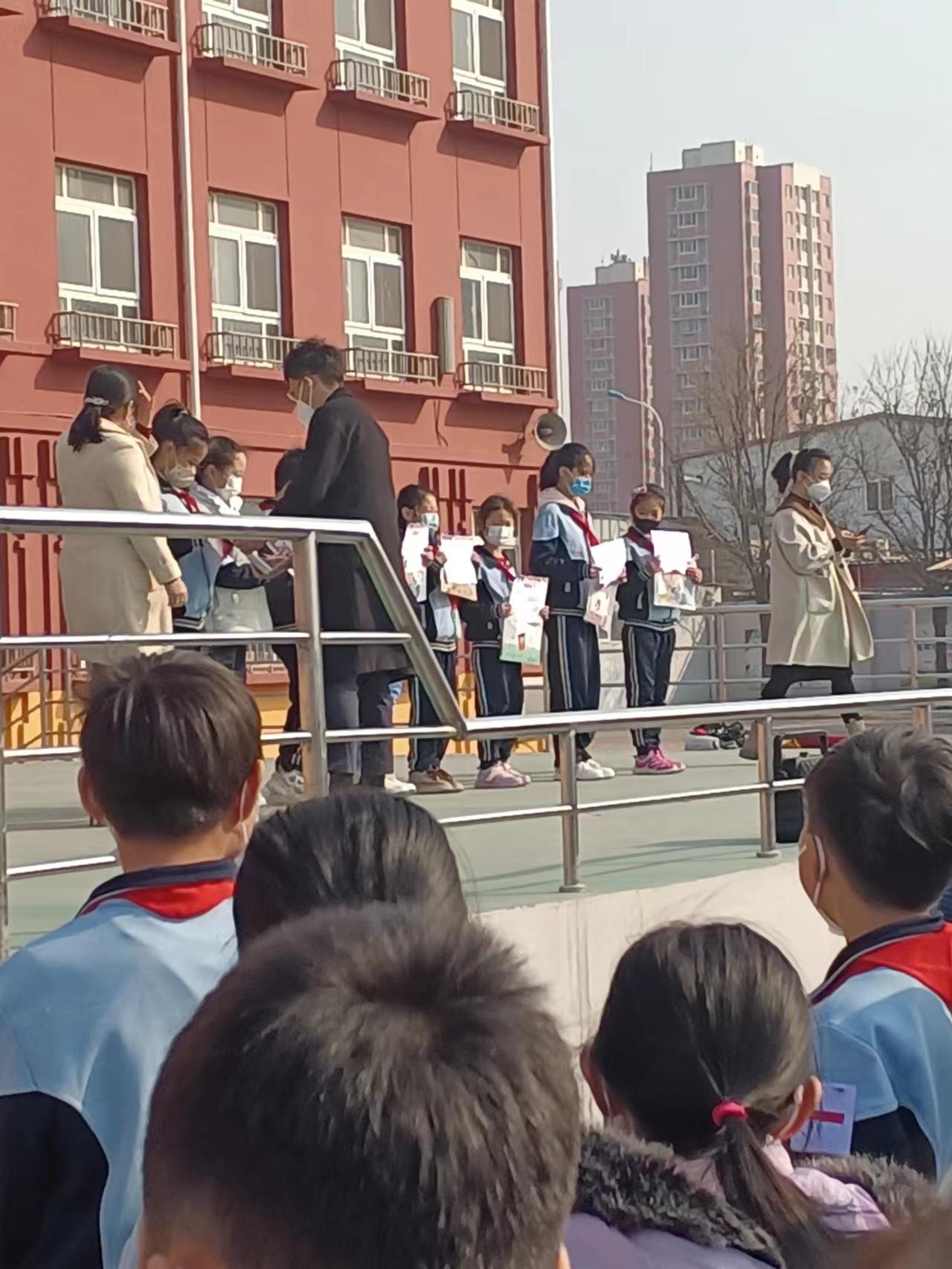 学校领导为得奖的同学颁发证书