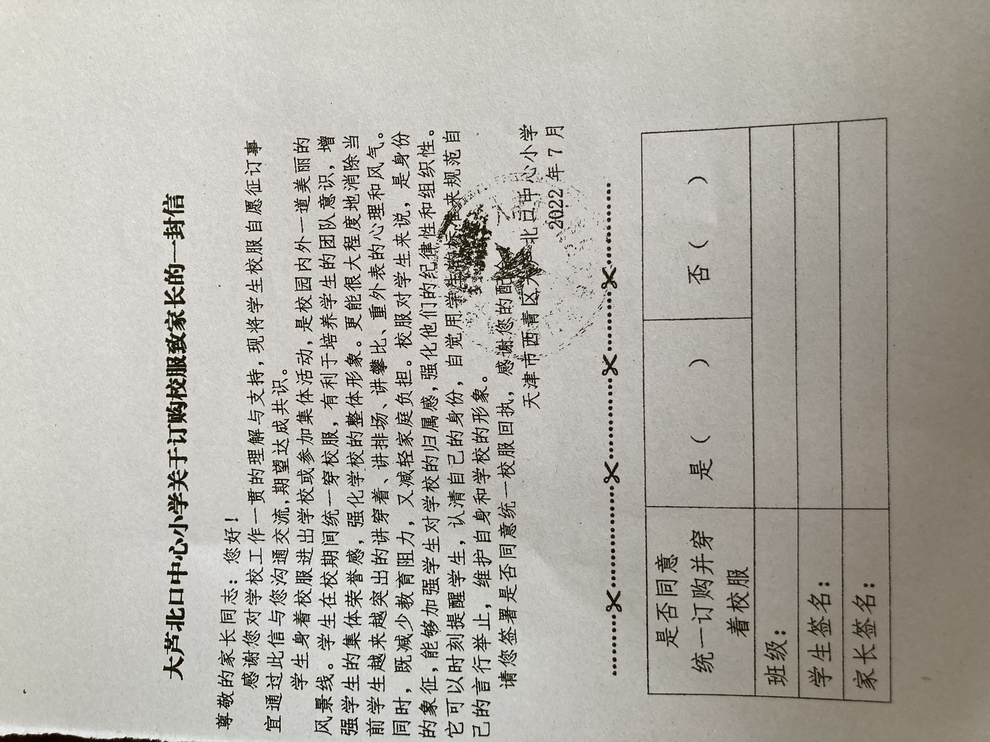 关于订购校服的家长信